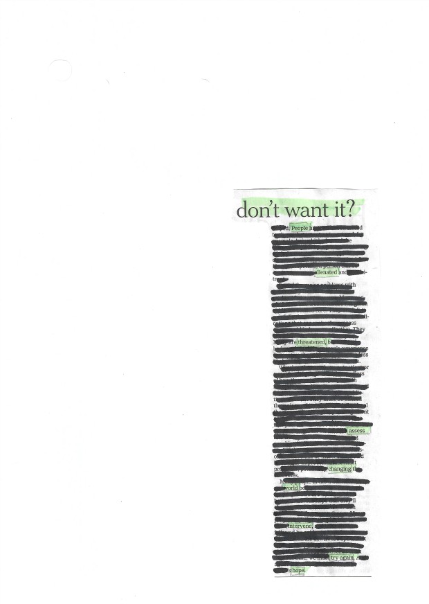 With MHREC’s own experience and its documented use world wide; using black out poetry as a tool of creative expression and social activism is a unique and compelling tool for amplifying voices and advocating for human rights. This approach to art and activism involves using existing texts by selectively redacting words, creating a new piece that carries a message.